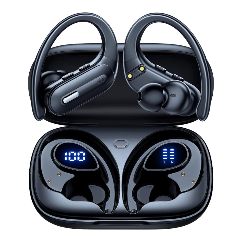 “These headphones surprised me a lot,” said one reviewer. “The sound is clear and powerful, with excellent noise cancellation that’s really noticeable. The battery lasts a long time, and the case has an LED screen that’s super practical for checking the charge level. The earhook design is perfect for exercising because they don’t move around on you. A great product and a very good purchase.”