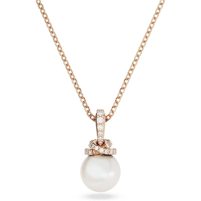 If you want a piece of jewelry that makes a statement without being overwhelming, this is the perfect pick. It’s plated with a rose gold finish, giving it a warm and elevated feel. The pendant is dainty, measuring 0.83 by 0.39 inches. It features a single pearl that’s topped with a gorgeous twisted design that’s accented with cubic zirconia stones.