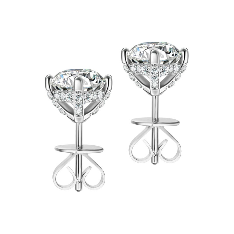 These lab-created Moissanite stones are designed and cut specifically to catch that light in the same fashion that diamonds and other gemstones do. These studs are set in sterling silver with smaller gemstone inlays that create a brilliant sparkle all night long. The classic round stud shape makes them perfect for fancy nights out or everyday wear, easily allowing them to be paired with her favorite outfits for all occasions. With advanced setting and special-plating technology, these stones will stay in place and shine bright without tarnishing or falling out.