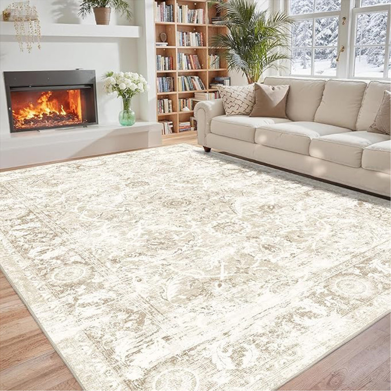 This gorgeous area rug brightens up the space with an aesthetically pleasing beige hue. Those in homes with dogs or children typically want to avoid lighter color rugs in case of accidents or spills, but the machine-washable design eliminates that fear. Crafted from faux wool and polyester, this durable area rug can be cleaned in the washing machine when it begins looking dingy or dirty. Thanks to its low-pile construction, it can also be vacuumed during regular cleaning or spot cleaned as required.