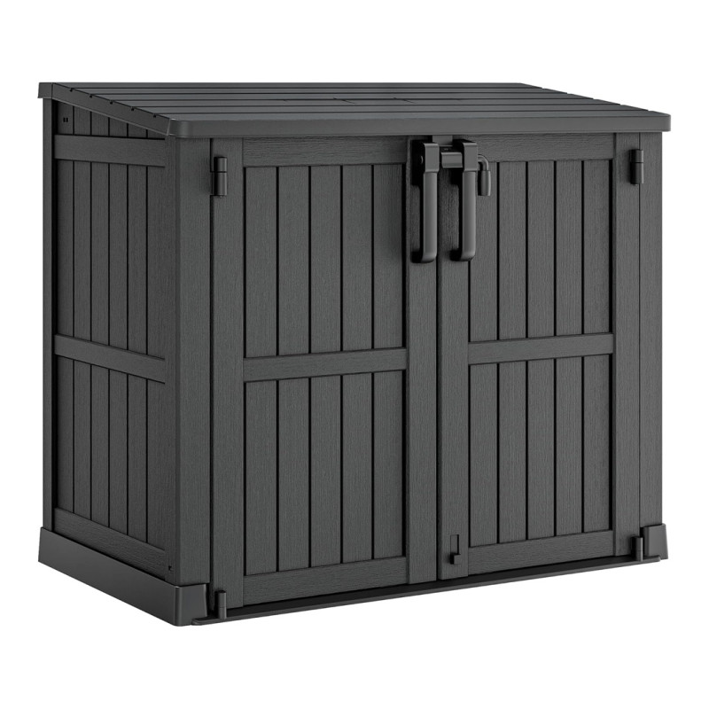 Made with a double layer of resin panels, this storage shed is sturdy and durable enough for the outdoors. The all-weather resin material is waterproof, and it won’t warp like wood or corrode like metal. Designed for superior storage, the pre-drilled locking holes create a structure that’s tightly sealed, so water won’t come in from the outside on rainy days. The handles even have a built-in lock to keep your items securely inside, even once the wind starts blowing.