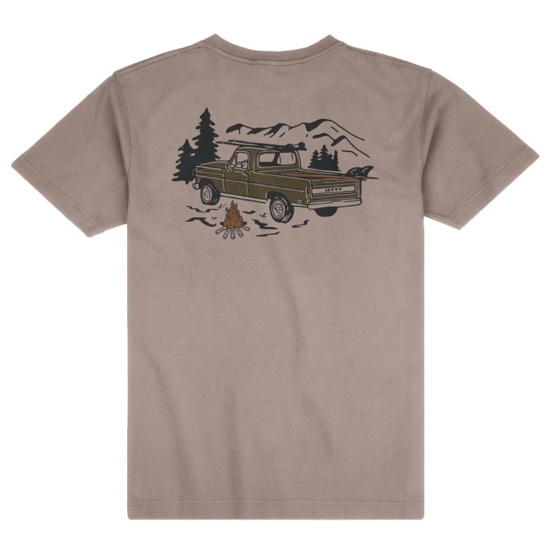 Starting strong with a basic necessity, a soft, 100% ringspun cotton tee should be a staple in everyone’s wardrobe. Cotton is breathable, washes well, and feels great on its own or layered under a cozy sweater. This shirt comes in a beautiful Cinder tan color with a depiction of a cozy, laid-back night camping out by the fire with a dependable pickup. It’s a simple graphic that can spark conversations or just show off what you’re about. One reviewer even said, “I always get compliments on this shirt.”