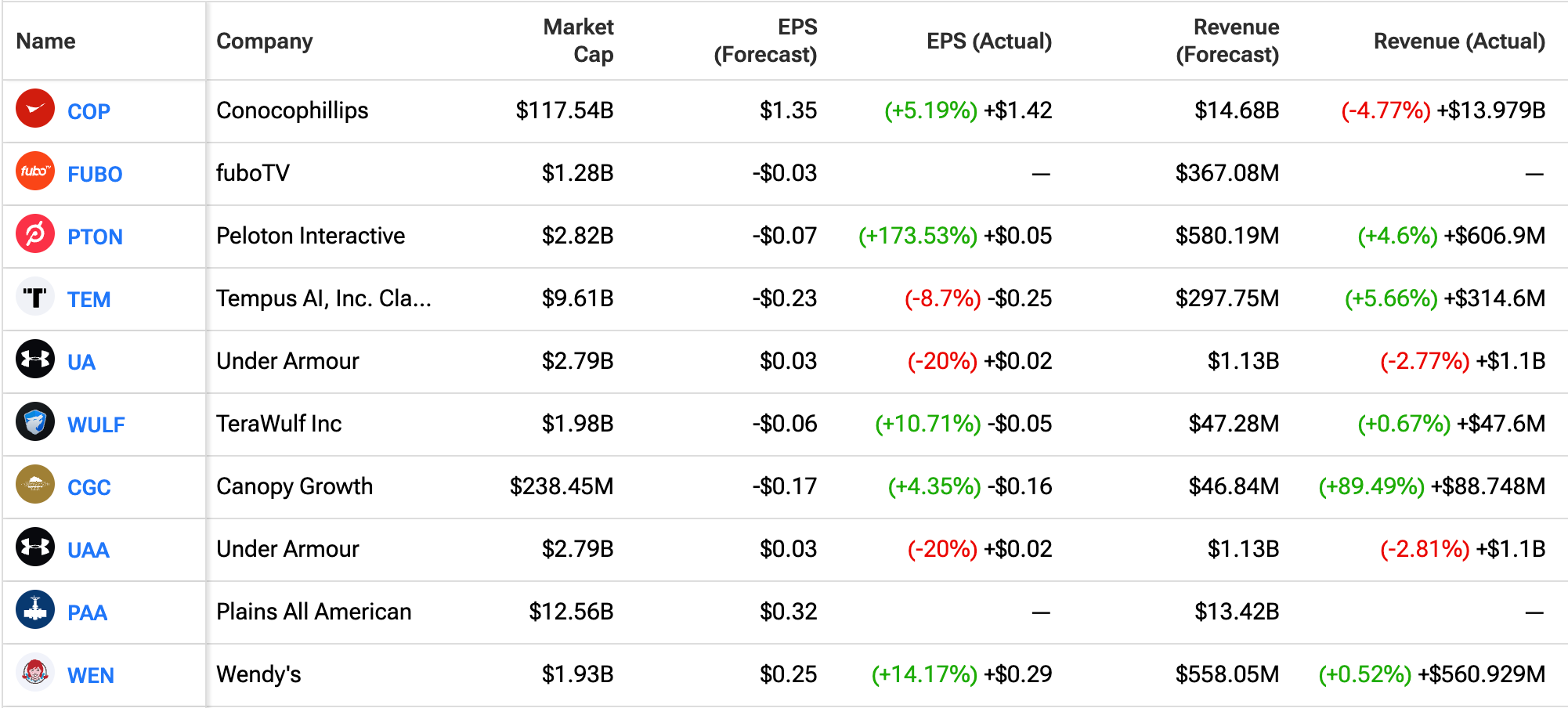 A.M. Earnings: ConocoPhillips, Peloton, Canopy Growth