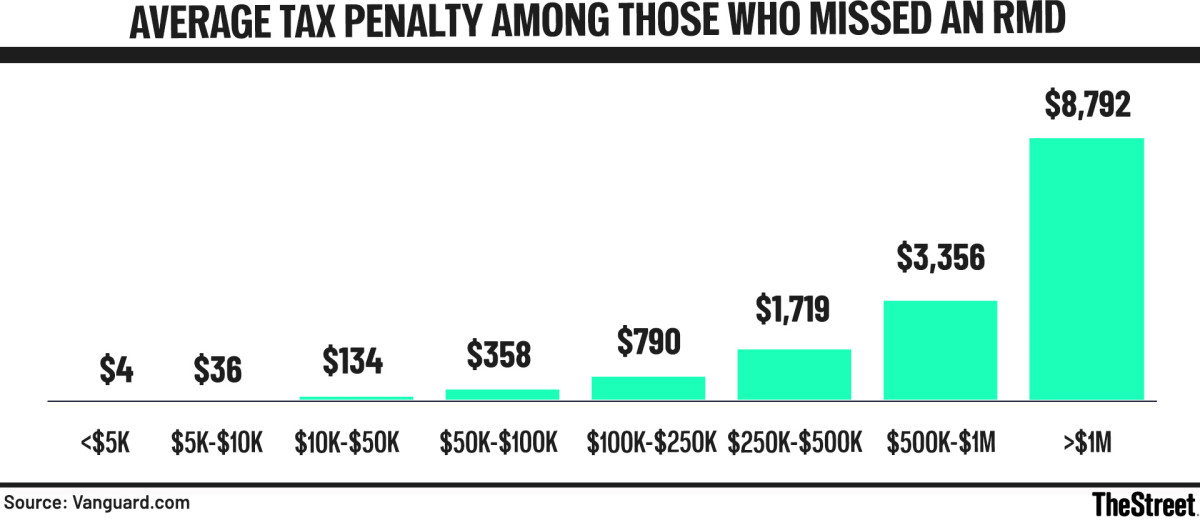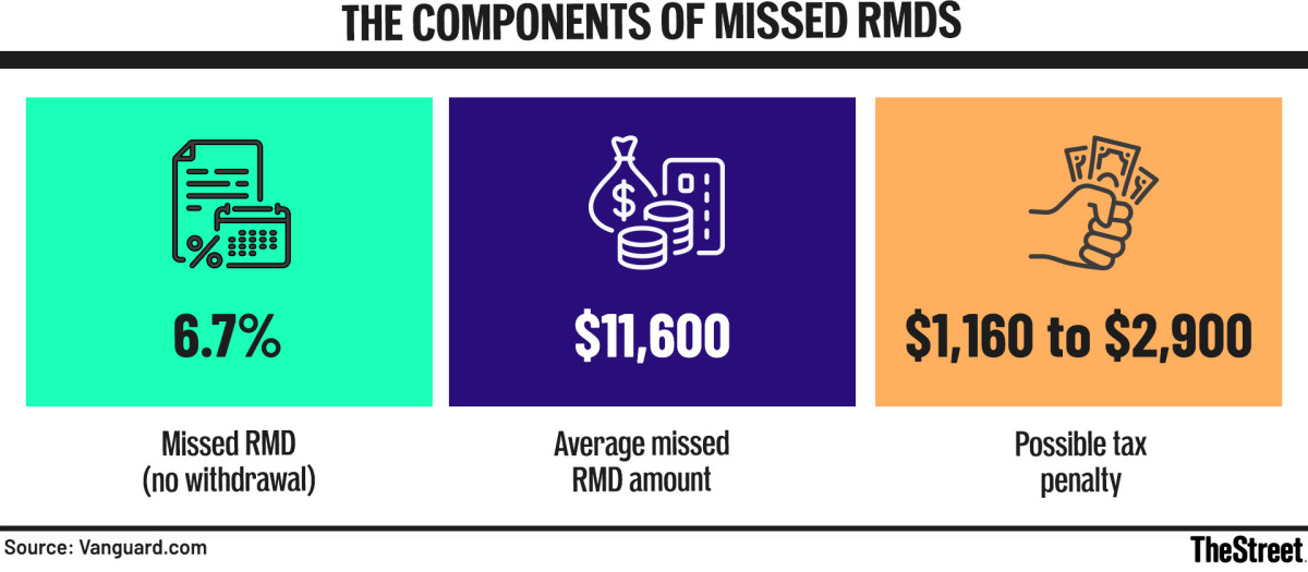 Nearly 7% of Vanguard IRA investors failed to take their required distribution in 2024. That translates to an estimated 585,000 IRA holders nationwide who missed an RMD and paid an average tax penalty of more than $1,100, the research found.