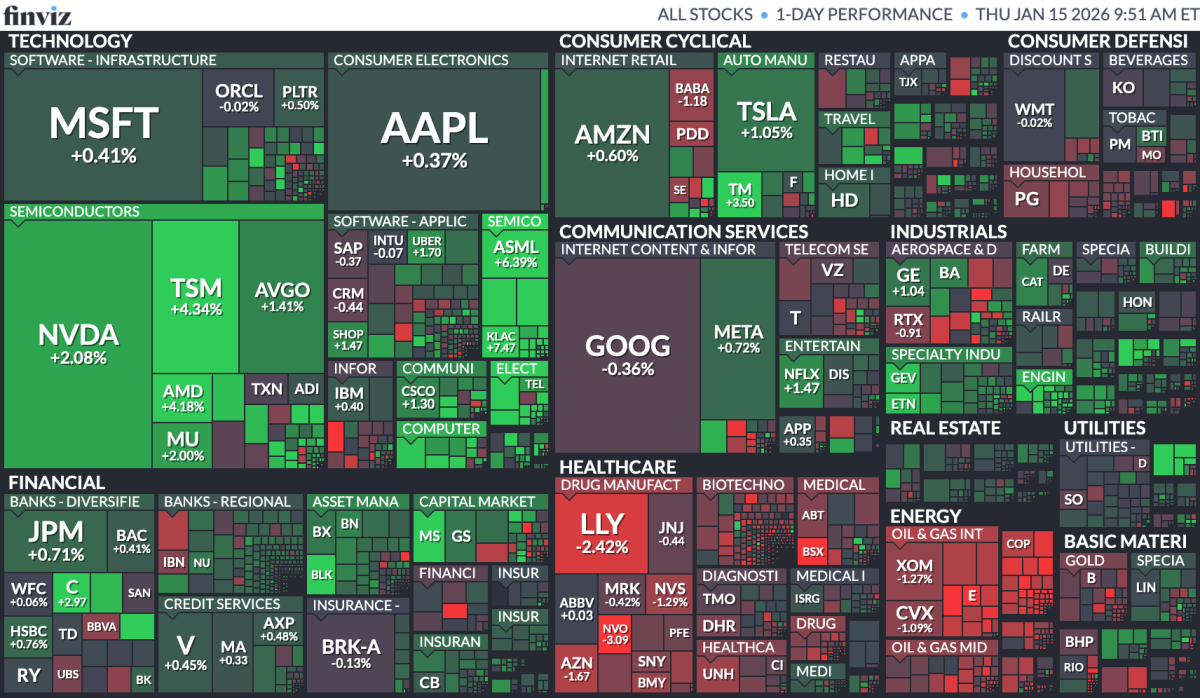 Happy Thursday. This is TheStreet’s Stock Market Today for Jan. 15, 2026. You can follow the latest updates on the market here in our daily live blog.