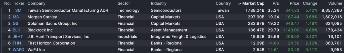 Regional banks First Horizon and WaFd also join the crop today, offering a perspective on how things are looking on the smaller side of the financial sector.