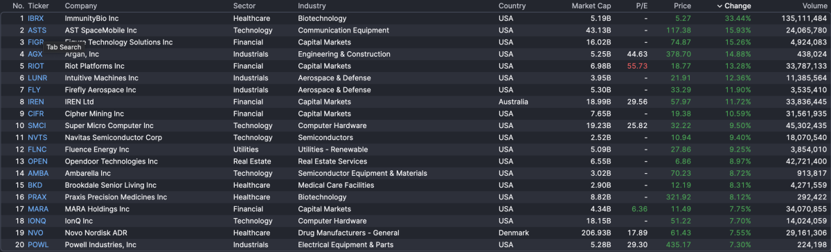 Here’s a glimpse of all stocks on the U.S. markets for some more context (15 min delayed, so this would be at 9:44 a.m.):