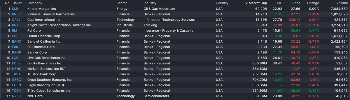 Then, after the market closes, we can expect another row of regional bank reports, along with reports from oil & gas company Kinder Morgan, IT company Caci International, and trucking company Knight-Swift: