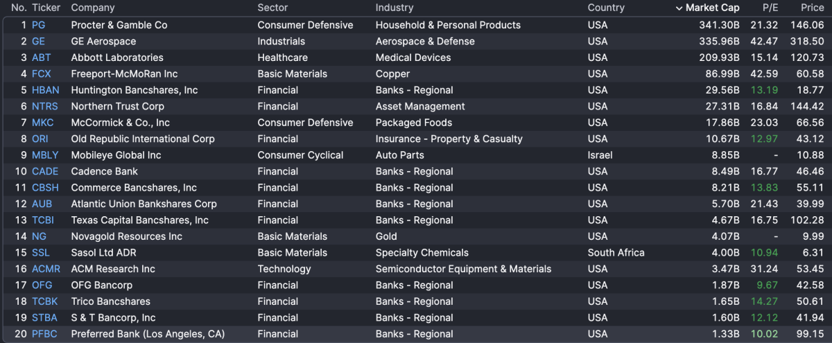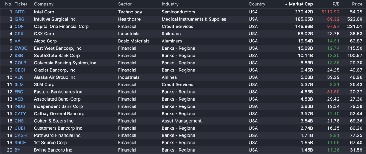 As already mentioned, today will be the busiest day for fourth quarter earnings so far this season, anchored by Procter & Gamble, GE Aerospace, and Intel Corp., among other reports. Sorted by market cap, here are the 20 largest reports this morning: