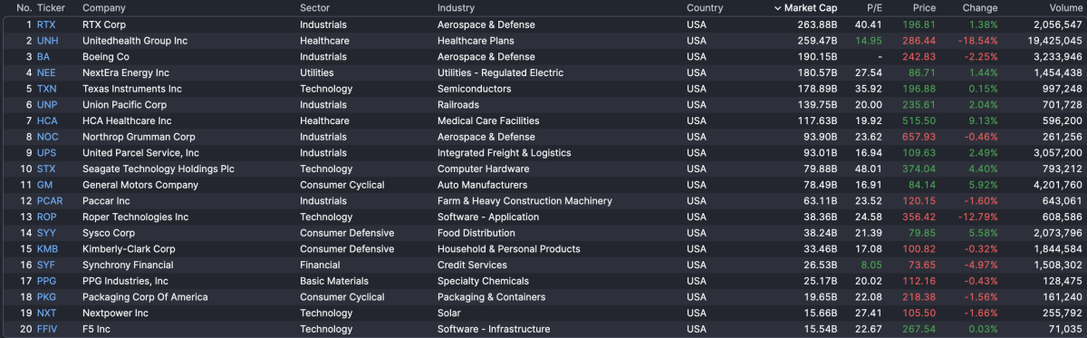 For the Dow, the decline is led by UnitedHealth (-19.1%), which is off nearly 20% after the Trump administration announced that it would keep Medicare reimbursement rates for providers nearly flat next year. Peers such asCVS Health (-11.46%) and Humana (-20.34%) are also poorly situated this morning after the announcement, which has weighed on the broader health care.