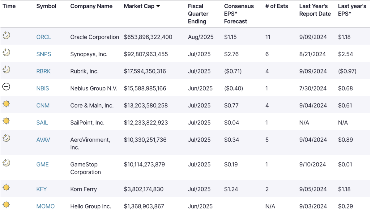 Top 10 earnings sorted by market cap [Sept. 9, 2025]