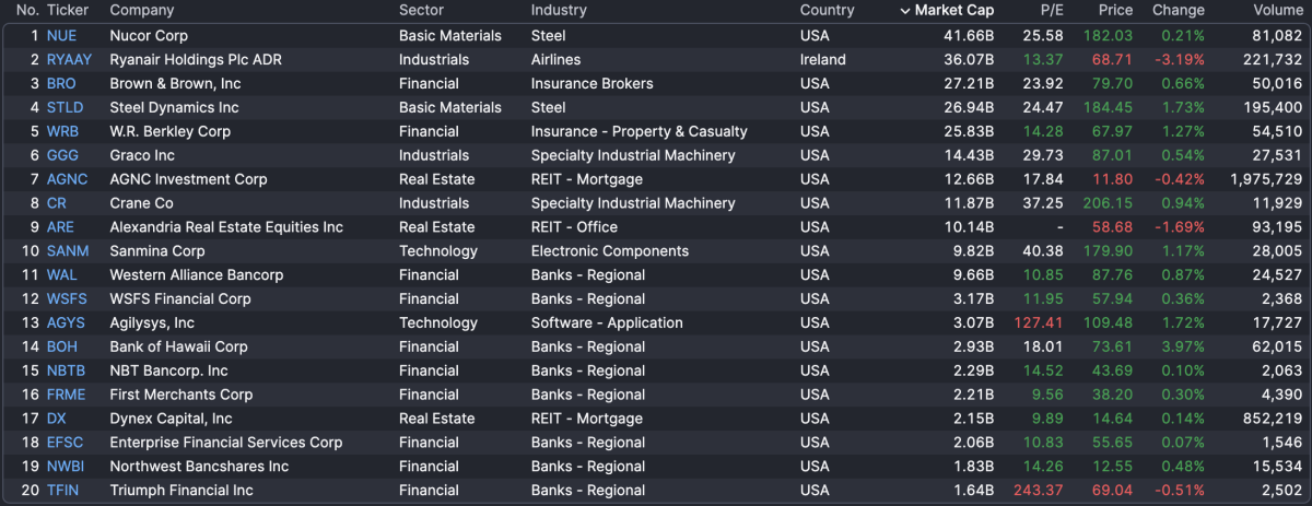 This week, we continue to digest results from the fourth quarter, starting with Nucor Corp., Ryanair, and Brown & Brown, among others. Here are the 20 largest earnings reports today, sorted by market cap: