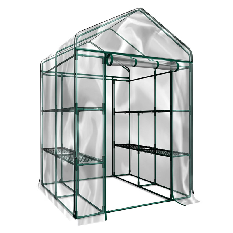 This greenhouse is perfect for extending your growing season, whether you want to plant early indoors or want to let your plants grow later into the season outdoors. The PVC cover has a zippered, roll-up door that can be kept rolled up indoors for convenience, or closed outdoors to protect plants from frost, allowing your growing season to extend into colder weather. It can also house flowers year-round, allowing you to make beautiful table decorations for special occasions or use the flowers for herbal tea.