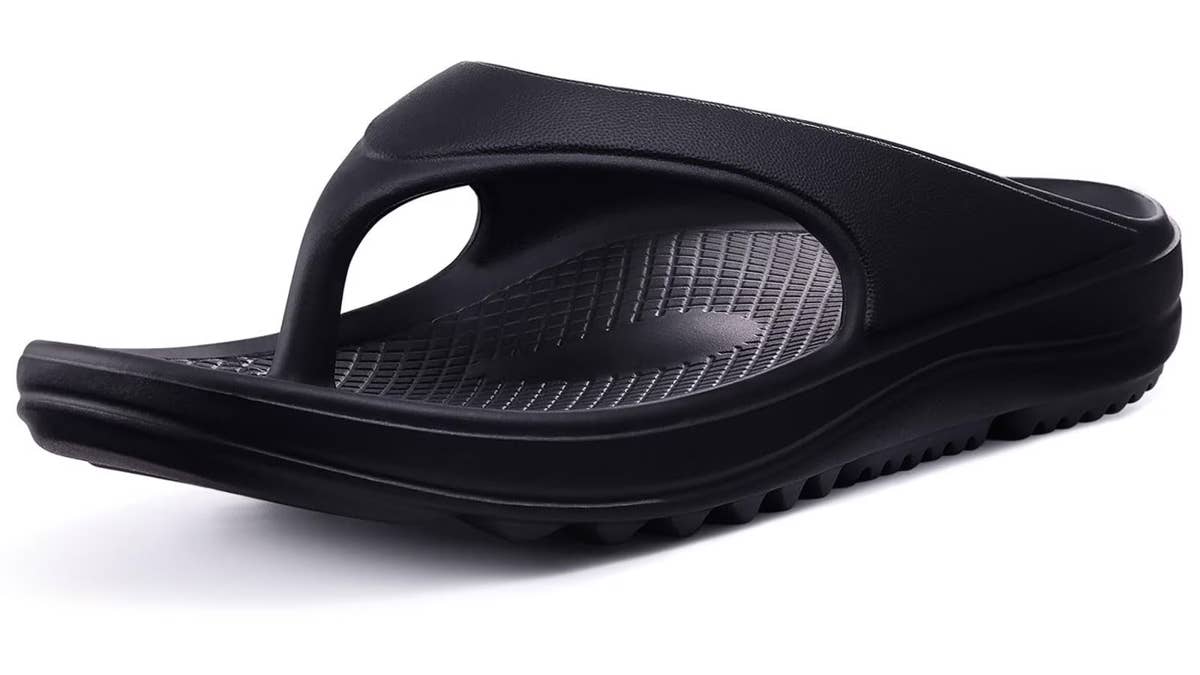Made from ethylene-vinyl acetate (EVA), these flip-flops are flexible, lightweight, and waterproof making them the perfect shoe for summer. Equipped with a 1.57-inch thick cushioned sole, the base of the shoe offers “pillow softness” for your feet to enjoy when you’re wearing them. It’s so comfortable, it’s said to feel like “cloud walking” especially because it’s constructed with such a lightweight material. It helps reduce excessive stress and strain on the feet.