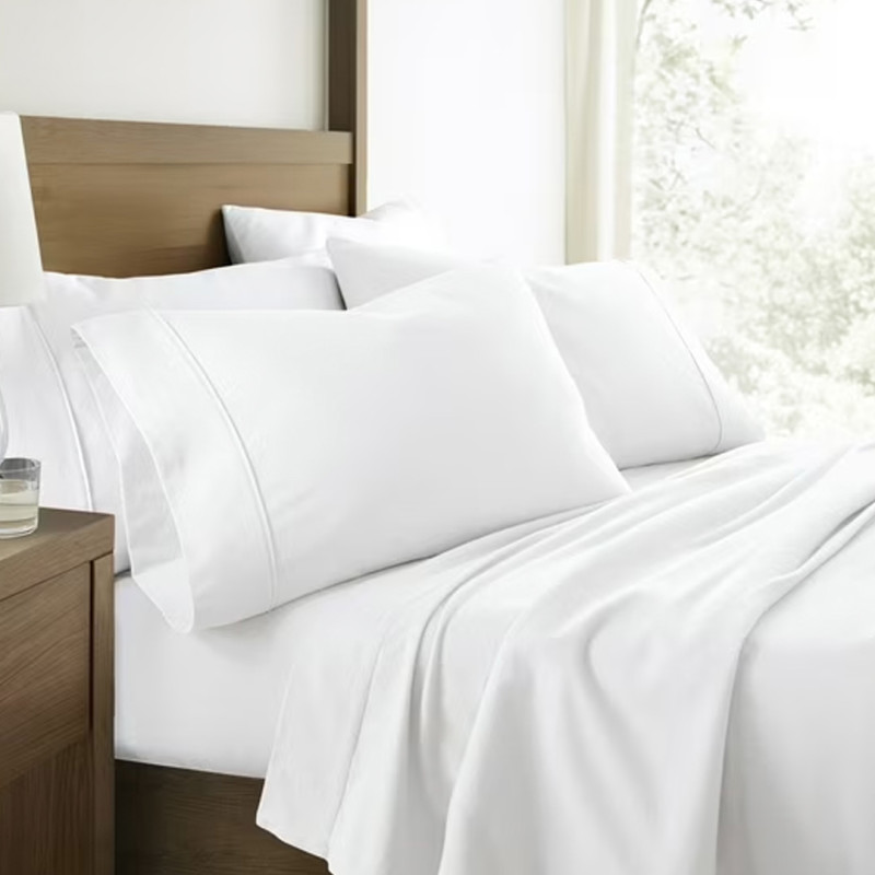 - Set includes: One fitted sheet, one flat sheet, and two pillowcases.