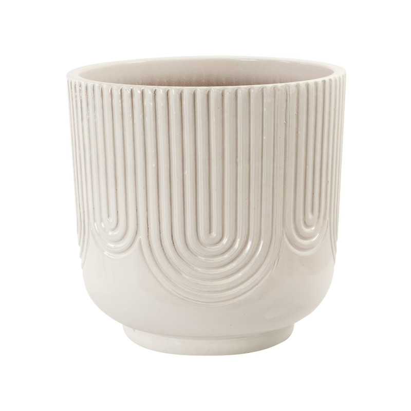 Need a bigger planter? Try this gorgeous 16-inch option. It features art deco-style arches and comes in a soft neutral tone. It features two drainage holes with silicone plugs and is also chip-resistant.